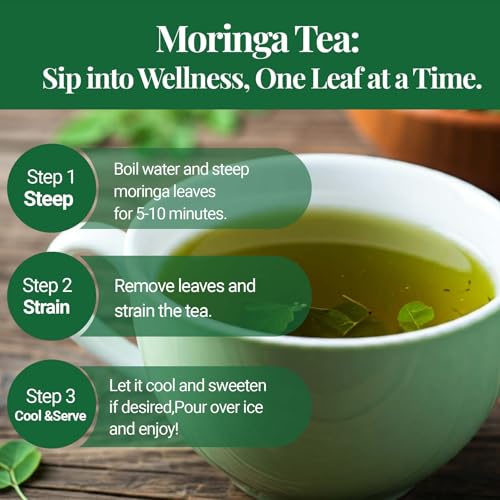 Easy Brewing: Simply steep 1-3 teaspoons of dried Moringa leaves in a cup of boiling water for 5-8 minutes then sweeten with honey or your preferred sweetener for a delightful tea cup of warm moringa loose leaves tea.
