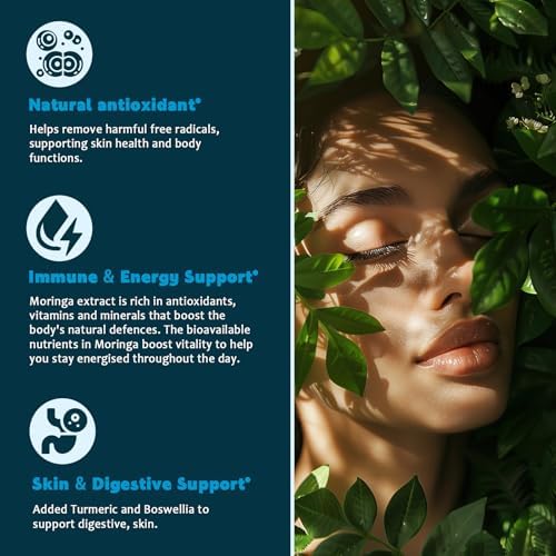 Unique Formula Combination: Curcumin in our Moringa Liquid Drops is well known for its health benefits, and Boswellia is good for skin health, but its low bioavailability often limits its effectiveness – we have improved the organic Moringa Supplement formula and carefully combined it with piperine from black pepper to increase absorption and bioavailability, ensuring purity and quality, for skin support, immune support, antioxidant support and more.