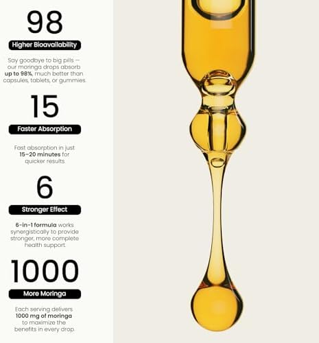 【Convenient and Versatile Usage】 Our moringa drops make daily supplementation easy, eliminating the need to swallow large capsules. Simply take 2ml daily for a 30-day supply per bottle. Consume directly or mix into your favorite beverages like water, coffee, tea, or smoothies. The liquid form offers an efficient and convenient absorption alternative to traditional capsules or tablets, making it ideal for men and women seeking optimal wellness.