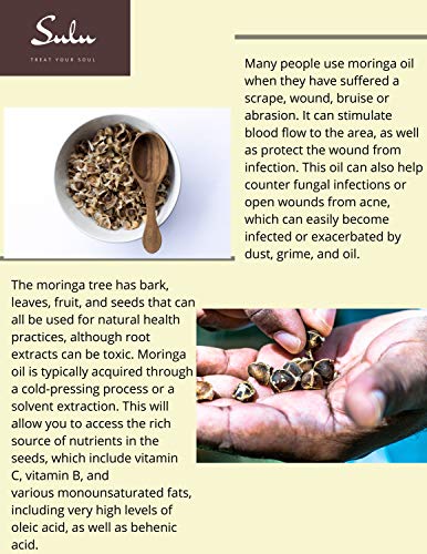 Moringa oil is extracted by cold pressing the seeds of Moringa oleifera tree grown in India. This tree grows long pods which contain seeds.
