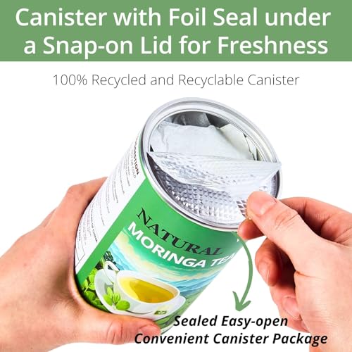[ Eco-Conscious Tea Bags & Canister ]- Our best morimga tea bags are made from paper, they contain no strings, wrapping, staples, adhesive, bleach, or dyes. Enjoy pure, high-quality moringa leaf in biodegradable bags. And special convenient canister with lid. There is a foil protective seal under the lid – easy to remove and useful to keep the miringa tea fresh