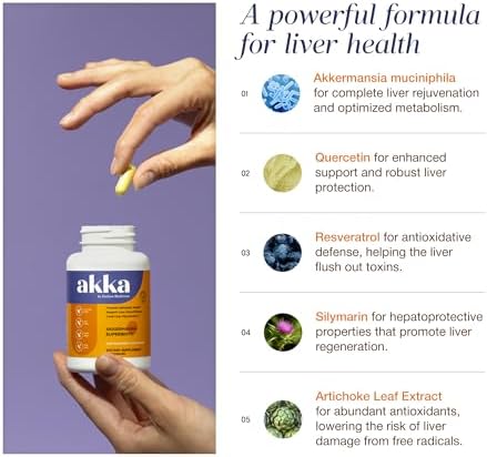 AKKA Premium Liver Cleanse Detox & Repair Superbiotic – Supports Liver Health & Function, Boosts Energy, Digestion & Metabolism with Bioavailable Pasteurized Akkermansia, Non-GMO, Gluten-Free, 60 Caps