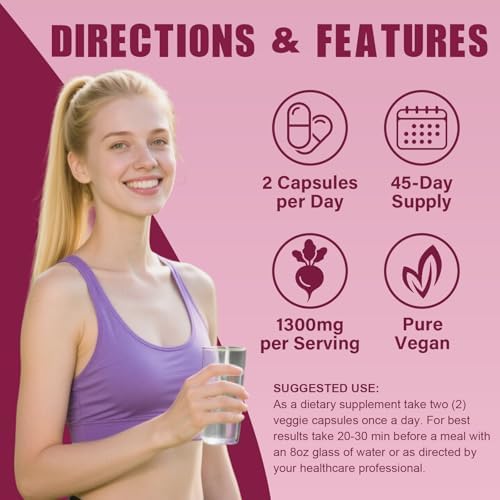 Pure & Natural Ingredients – Each beet root capsule contains 1300mg of pure beetroot powder with no artificial colors. Gently dried using low-temperature processing to preserve natural nutrients.