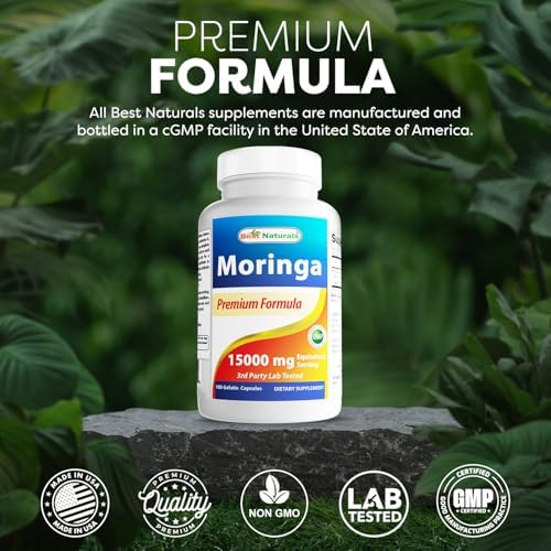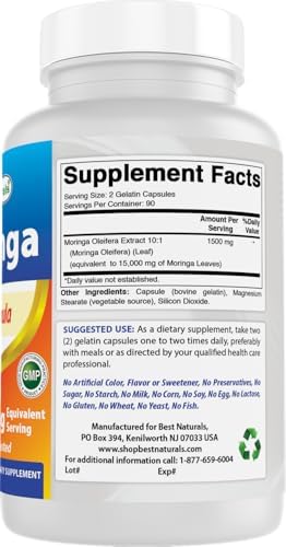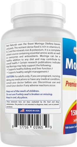Best Naturals Moringa Extract 10:1 1500mg per Serving – 180 Capsules – Superfood Nutrients for Healthy Wellbeing
