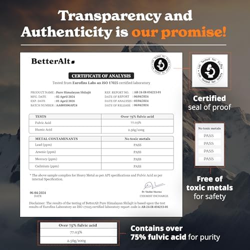 REVITALISED ENERGY AND VITALITY: Harness the power of our Pure Himalayan natural shilajit resin for a renewed sense of energy and vitality. Ayurvedic medicine has used its strong powers for ages to boost stamina, promote robust health, and restore your general well-being. Discover the ageless knowledge of this natural energizer with our betteralt himalayan shilajit
