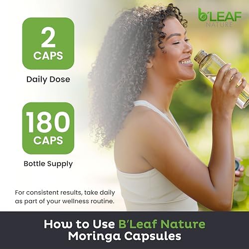 B’LEAF NATURE Organic Moringa Capsules 1000mg, 180 Count – Moringa Capsules with Organic Olefeira Powder for Immune Support, Energy & Balance – Vegan, Non-GMO Supplements for Daily Wellness