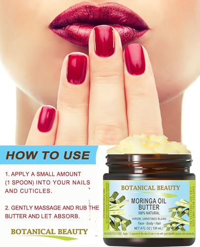 Botanical Beauty MORINGA OIL BUTTER is non-comedogenic and it won’t clog your pores. A Little Goes a Long Way, Absorbs Quickly, Not Greasy, Not tested on Animals, NO PRESERVATIVES, Artificial COLORS or FRAGRANCES.