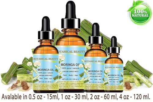 MORINGA OIL is PURE UNDILUTED VIRGIN UNREFINED with no additives or artificial fragrances added, does not clog the pores. Absorbs quickly, leaving a light, non-greasy feeling. Not tested on Animals, DOES NOT CONTAIN ANY PRESERVATIVES. MORINGA OIL is acquired from first presses of unshelled Moringa seeds, harvested from wild-growing plantations in Himalaya.