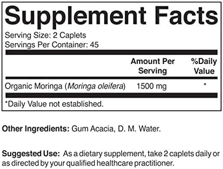 1,500mg of Organic Moringa Per Serving, 750mg Per Tablet