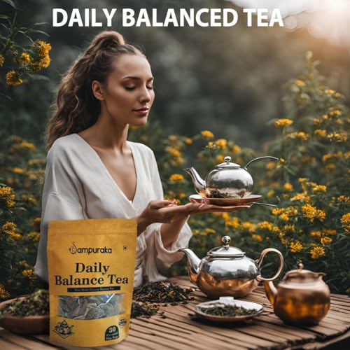 Daily Balance Tea – Natural Herbal Tea with Moringa, Gymnema, Jamun seeds, Cassia, Fenugreek, Guava leaves, Cinnamon – 30 Pyramid Tea Bags (1)