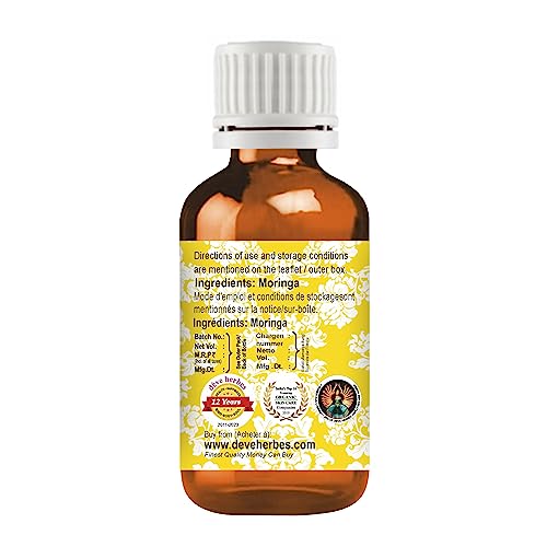 Deve Herbes Moringa Oil (Moringa oleifera) | Cold Pressed | Pure | Natural | Undiluted | For Diluting Essential oils | For Hair, Skin & Massage | Non-Sticky| Lightweight| Men & Women | 15ml (0.50 oz)