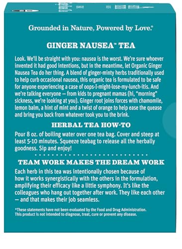 Earth Mama Organic Ginger Nausea™ Tea | Comforts Occasional Nausea + Morning Sickness, 16 Teabags Per Box