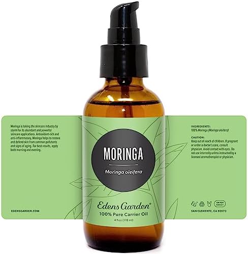 Edens Garden Moringa Carrier Oil- 100% Pure Premium Hexane Free, Natural Anti-Aging Moisturizer for Face, Skincare, Body, Hair, Scalp & Nail Care, Massage, Diluting Essential Oils 118 ml (4 fl oz)