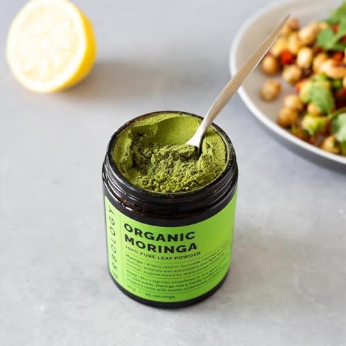 Erbology Organic Moringa Leaf Powder 3.2 oz – 45 Servings – Body Cleansing – Immunity Support – Rich in Iron – Sustainably Sourced Straight from Farm in India – Small Batch – Vegan – GMO-Free