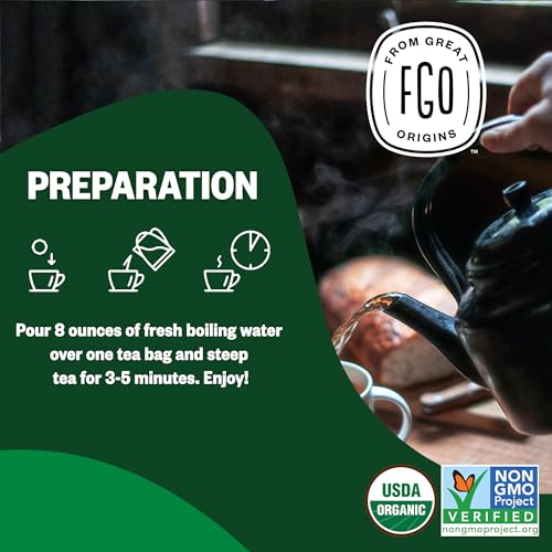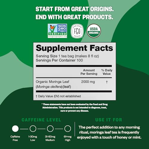 FGO Organic Moringa Tea, 100 Count, Eco-Conscious Tea Bags, Resealable Bag, Caffeine Free, Packaging May Vary (Pack of 1)