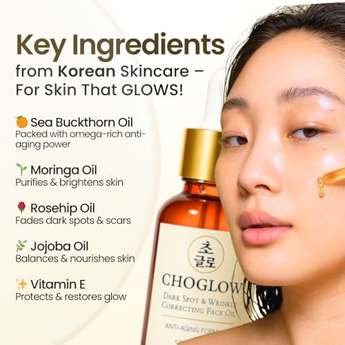 Glow Face Oil – Retinol Alternative for Dark Spots, Wrinkles & Pores – Jojoba, Moringa, Rosehip, Sea Buckthorn, Vitamin E – Anti-Aging Brightening Serum for Glowing Skin