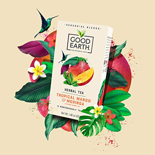 Good Earth Sensorial Blend Flavored Herbal Tea Tropical Mango and Moringa, No Artificial Color, No Preservatives, 15 Bag (Pack of 5)