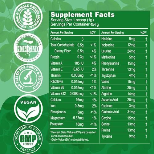 SUGGESTED USE: Add 1 Scoop of Organic Moringa Leaf Powder to your favorite beverages and shake well for proper mixing. You can take this mixture once or twice daily.