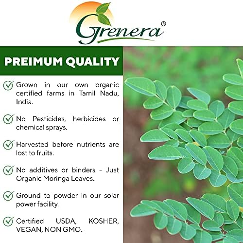 Grenera Organic Moringa Powder – 2.2 lbs (35.2 oz) | Moringa Oleifera Leaf Powder Lab Tested for Purity | Moringa Powder Organic Perfect for Smoothies, Drinks, Tea & Recipes | 100% Raw from India