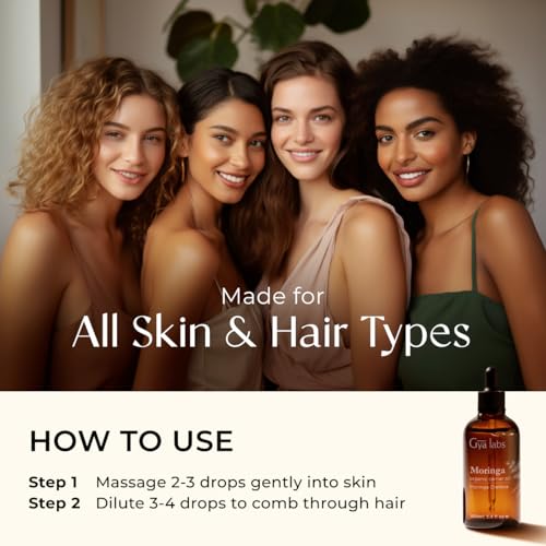 Gya Labs Moringa Seed Carrier Oil – 3.4 Fl Oz – for Hair, Skin, Face, Scalp & Body Massage