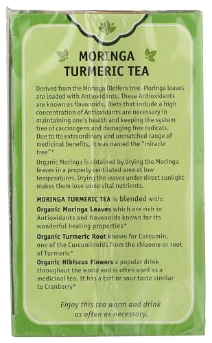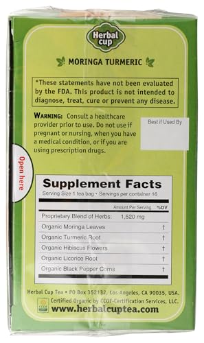 Herbal Cup Ayurveda Moringa Tea, Organic Turmeric, No Caffeine Herbal Teas (16 Count, Pack of 1)
