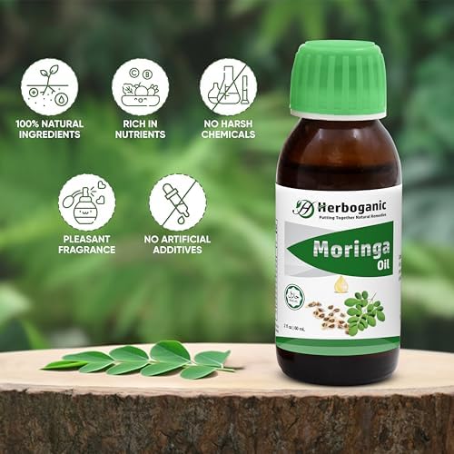HERBOGANIC Natural Moringa Oil – Pure & Cold-Pressed – 2 oz. Bottle for Hair, Skin & Face – Moisturizes, Nourishes & Hydrates – Rich in Vitamin E & Antioxidants – Ideal for Massage & Aromatherapy……