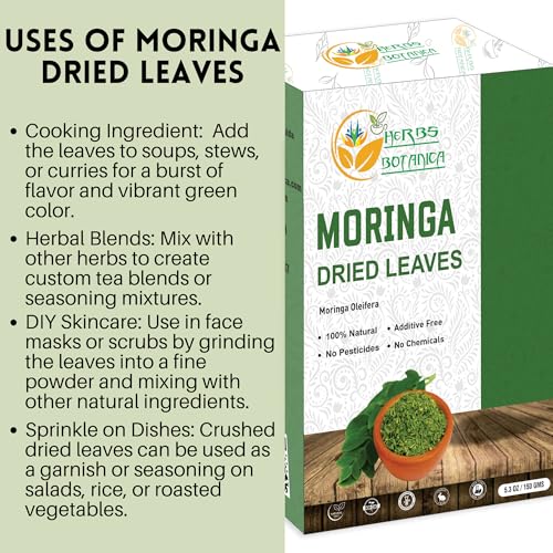 Herbs Botanica Dried Moringa Leaves Tea Leaf Hojas De Moringa Nutrient-Rich Herbal Tea Infusion for Immunity, Energy, and Wellness Energy Boost and Gluten Free 5.3oz / 150 gms