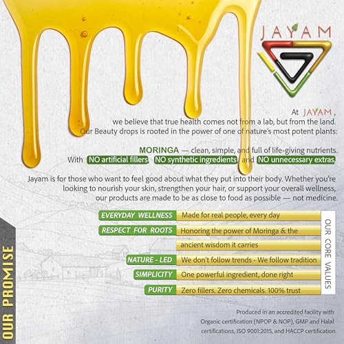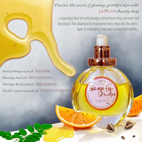 JAYAM Beauty Drops – Luxurious Moringa & Sweet Orange Seed Facial Elixir | Brightening, Anti-Aging & Deeply Nourishing Blend with Rare Moringa Root | Improves Skin Tones, Fine Lines & Wrinkles
