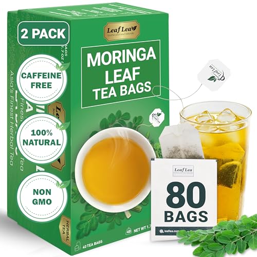 LeafLea 80 Moringa Tea Bags, Made from Natural Moringa Leaves, Caffeine-Free Herbal Tea, Sugar-Free, Individually Wrapped for Fresh Flavor (Pack of 2)
