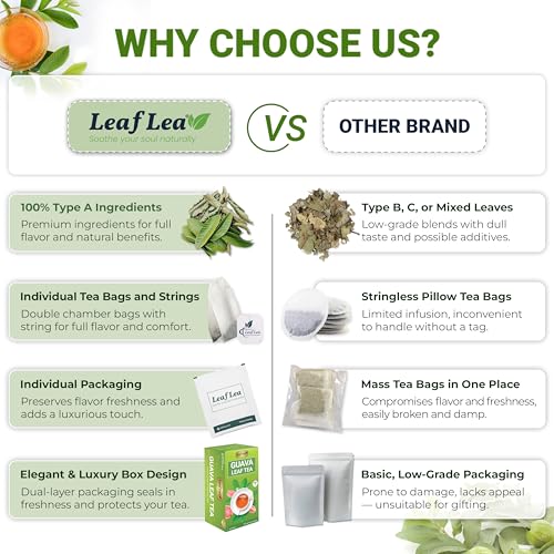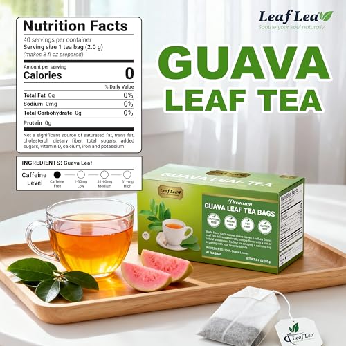 LeafLea Guava Leaf Tea, 40 Individually Wrapped Tea Bags, Made from 100% Natural Guava Leaves (Hojas De Guayaba), Supports Digestion & Wellness, Caffeine-Free, Sugar-Free, Vegan, Non-GMO