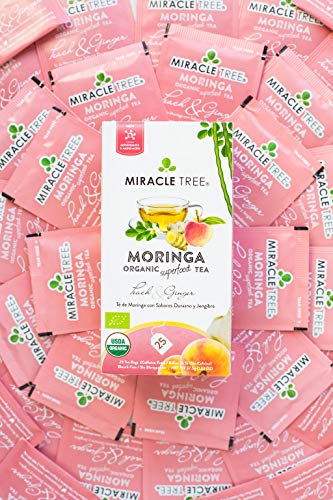 Miracle Tree – Organic Moringa Superfood Tea, 2 Pack Bundle, 2×25 Individually Sealed Tea Bags (Peach & Ginger, Honey & Vanilla)
