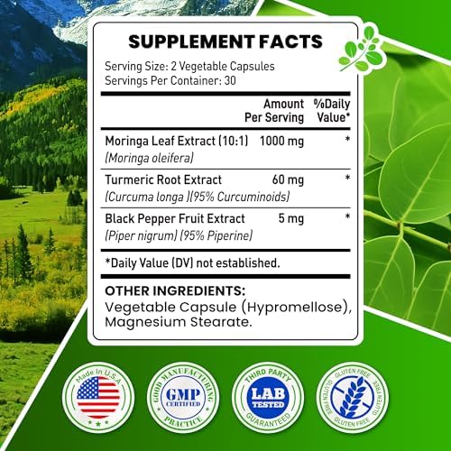 Moringa Capsules Made in USA – GMP Certified, 3rd Party Lab Tested, Non-GMO, Vegan