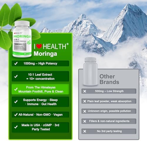 Moringa 1000mg All-Natural Vegan Supplement – Daily Health and Wellness Support for Men and Women