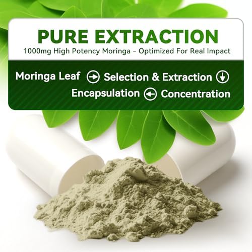 Moringa 1000mg All-Natural Vegan Supplement – Daily Health and Wellness Support for Men and Women