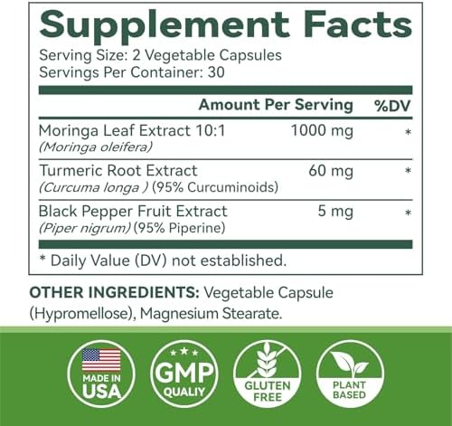 Be the first to review “Moringa Capsules 1000mg, Moringa Leaf Extract 10:1, Complete Green Superfood, for Energy, Sleep, Immune & Gut Health, Veg Capsules 60 Count, All-Natural, Non-GMO, Made in USA”