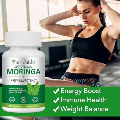 Moringa Capsules 800mg, Pure Moringa Powder Capsules Supports Energy, Joint & Immunity & Gut Health, Vegan Extract Non-GMO (60pcs)