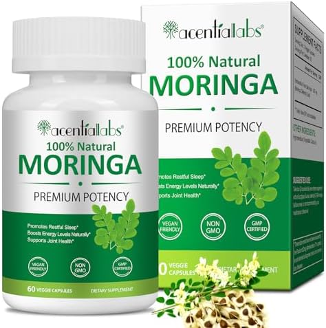 Moringa Capsules 800mg, Pure Moringa Powder Capsules Supports Energy, Joint & Immunity & Gut Health, Vegan Extract Non-GMO (60pcs)