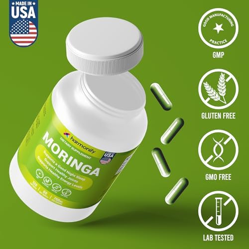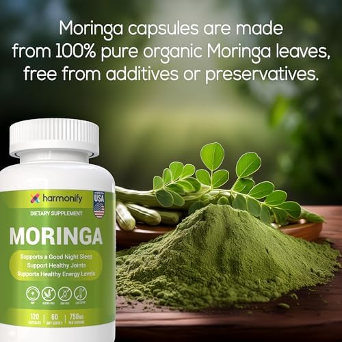 Unlock the ancient secret of wellness with Harmonify Moringa Capsules. Our premium Moringa dietary supplement harnesses the full potential of the Moringa oleifera tree, a powerhouse of nutrients often called the “Miracle Tree.” Each serving delivers 750mg of pure organic moringa leaf powder, carefully encapsulated for maximum bioavailability and an easily absorbed form. At Harmonify, we understand the importance of holistic well-being. That’s why our moringa pure capsules are specifically designed to offer comprehensive support. Experience the benefits of restful sleep, allowing your body to recover and rejuvenate. Our formula also supports joint comfort, contributing to your mobility and overall ease of movement. Furthermore, Harmonify Moringa supports healthy energy levels throughout the day, providing a natural path to enhanced vitality and helping you feel more alive, similar to other beneficial additions like “love wellness” products. We are committed to quality and transparency. Our moringa powder is sourced and manufactured in the USA in a GMP-certified facility, ensuring adherence to the strictest quality control standards. Every bottle of Harmonify Moringa is lab tested for purity and potency, guaranteeing that you receive a product free from gluten, GMOs, and unnecessary additives. With 120 capsules per bottle, providing a 60-day supply, Harmonify Moringa is an excellent addition to your daily health regimen. Choose Harmonify Moringa for a supplement you can trust, supporting your sleep, joint comfort, and energy, naturally and effectively.