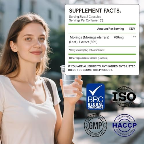 Moringa Capsules with Pure Moringa Powder | Skin Health and Immune Support | Non GMO, Gluten Free(150PCS)