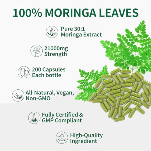 𝗠𝗼𝗿𝗶𝗻𝗴𝗮 𝗖𝗮𝗽𝘀𝘂𝗹𝗲𝘀: Moringa pure capsules Per serving contain 21,000 mg strength of Moringa Extract from a potent, powerful 30:1 extract. Taking it daily may promote sustained energy levels throughout the day in both men and women
