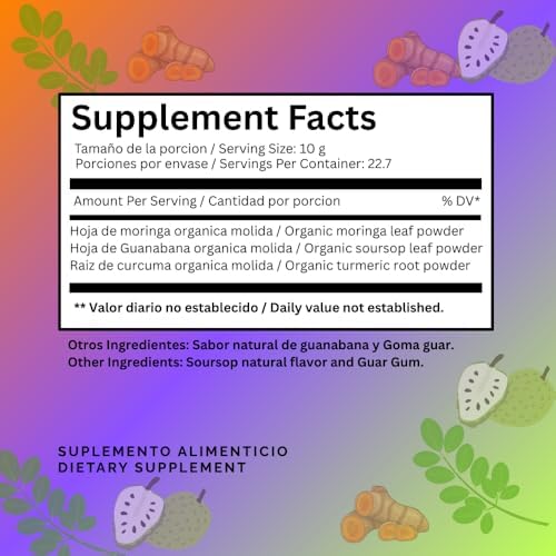Moringa, Guanábana & Curcuma |Moringa, Soursop & Turmeric Powder | Herbal Superfood Blend | Natural Energy & Antioxidant Support | Resealable Bag 8oz