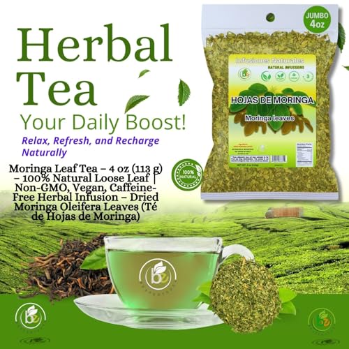 Moringa Leaf Tea – 4 oz (113 g) – 100% Natural Loose Leaf | Non-GMO, Vegan, Caffeine-Free Herbal Infusion – Dried Oleifera Leaves (Té de Hojas de Moringa) by BexpertsUSA