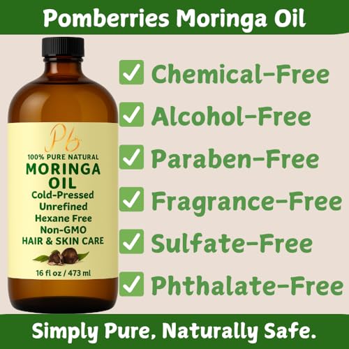 Moringa Oil – 100% Pure, Cold-Pressed & Unrefined – Moringa Seed Oil for Face, Skin, Hair & Body – Hydrating, Anti-Aging Moisturizer – 16 fl oz Amber Glass Bottle with Pump