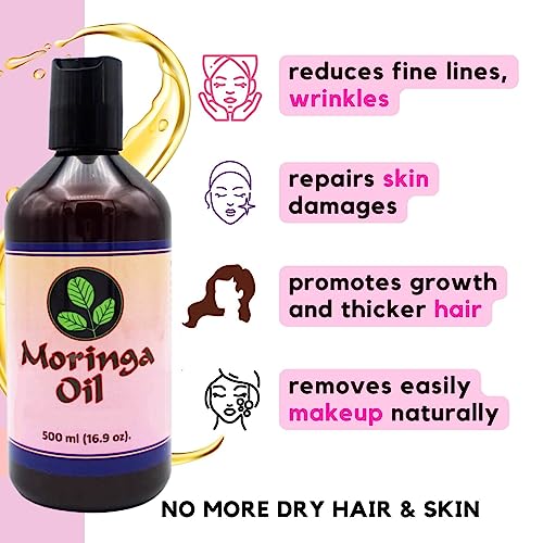 Moringa Oil 16.9 oz – Natural Face, Hair & Body Oil, 100% Pure, Cold-Pressed & Unrefined Moringa Seed Oil, Gluten-Free, Non-GMO, Vegan (500 ml)