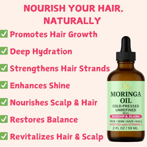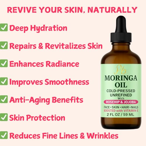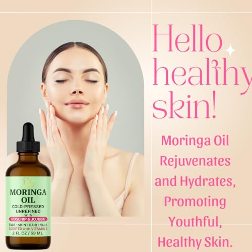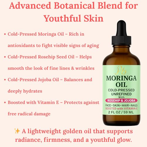 Moringa Oil Face Serum for Women with Rosehip, Jojoba & Vitamin E – Cold-Pressed, Unrefined & Lightweight Face Oil Serum – Hydrating, Anti-Aging & Moisturizing Skin Care for Healthy-Looking Skin
