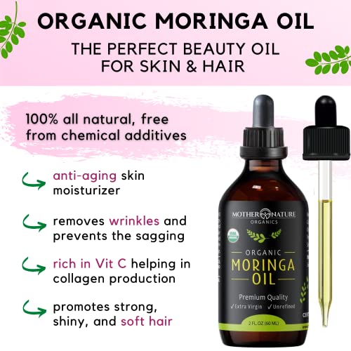 Moringa Oil – USDA Certified Organic, 100% Pure, Cold Pressed & Unrefined Gluten Free Oil (2oz) – Natural Moisturizer for Skin, Face, Body & Hair – Non-GMO & Vegan
