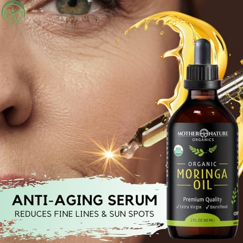 Moringa Oil – USDA Certified Organic, 100% Pure, Cold Pressed & Unrefined Gluten Free Oil (2oz) – Natural Moisturizer for Skin, Face, Body & Hair – Non-GMO & Vegan