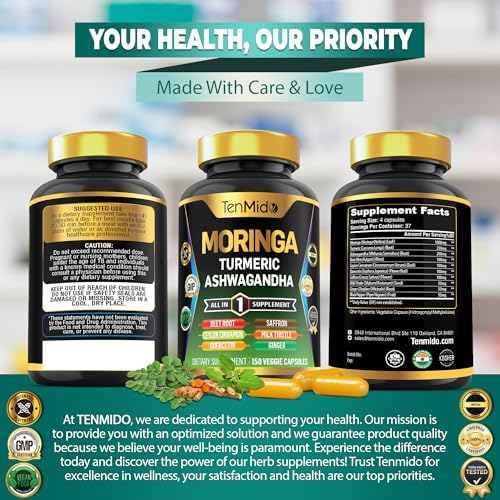 Convenient Nutraceuticals: Tenmido supplement offers a multitude of benefits. These all-in-one capsules have been packed into one convenient solution that is quick and easy to take. It allows you to make room for a single solution and keep away from the clutter of numerous supplements in your cabinet. The Moringa oleifera capsules are multi-mineral and provide a great alternative to other single mineral capsules. One bottle contains 150 veggie capsules.