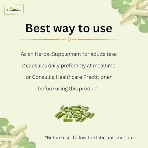 180 Capsule/ Natural Value -: “ Healthlee” Organic Moringa powder contains 180 capsules per bottle and 1000 mg strength per serving – Capsules are derived from the leaves of the Moringa oleifera tree, known for its antioxidant content.