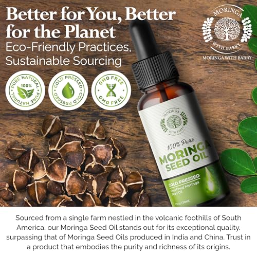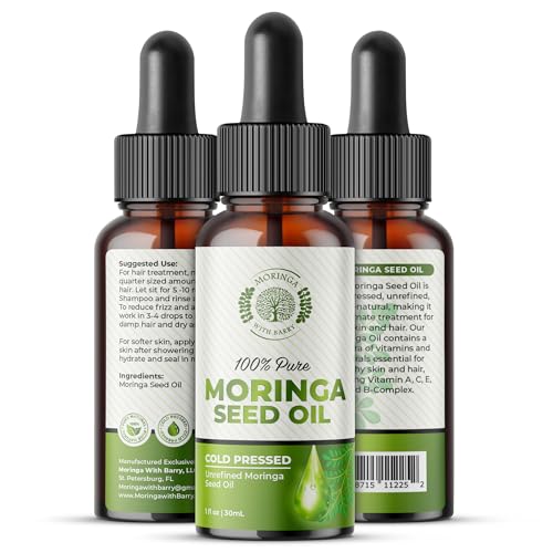 Moringa Seed Oil – 100% Pure, Cold-Pressed & Virgin, Unrefined Non-GMO Vegan Oil, Ultra-Hydrating Moisturizer for Dry Skin, Damaged Hair & Body, Anti-Aging, Ideal Carrier Oil